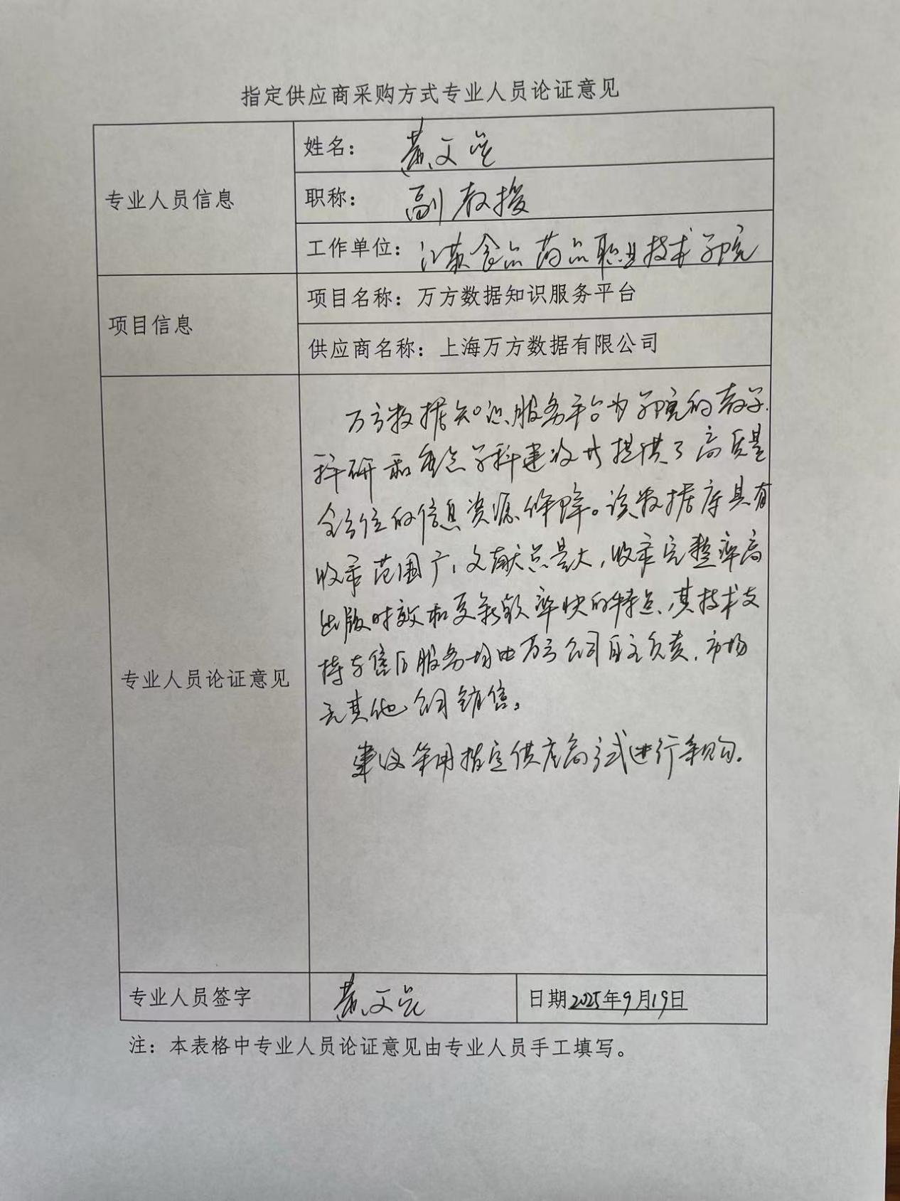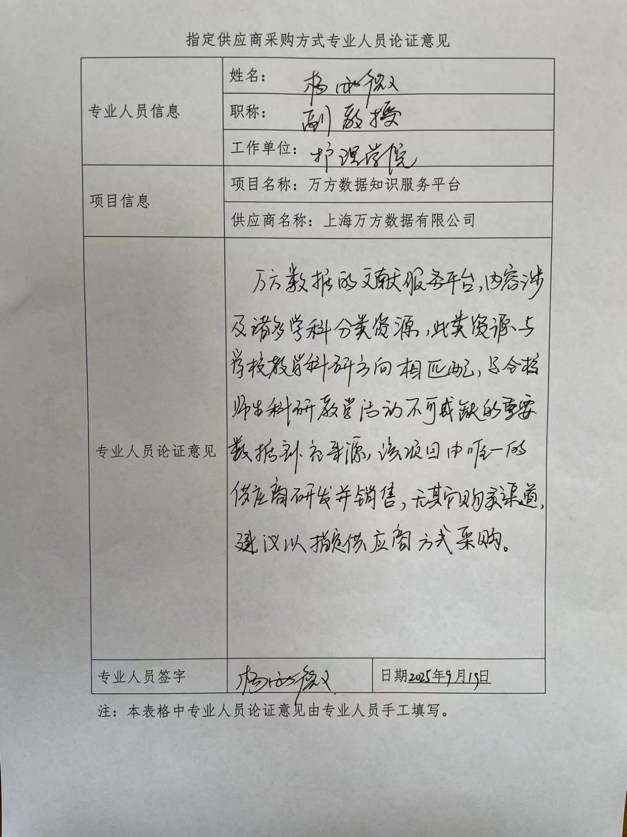 该项目是上海万方数据有限公司独家自主开发的平台,故本项目拟以指定供应商方式采购。