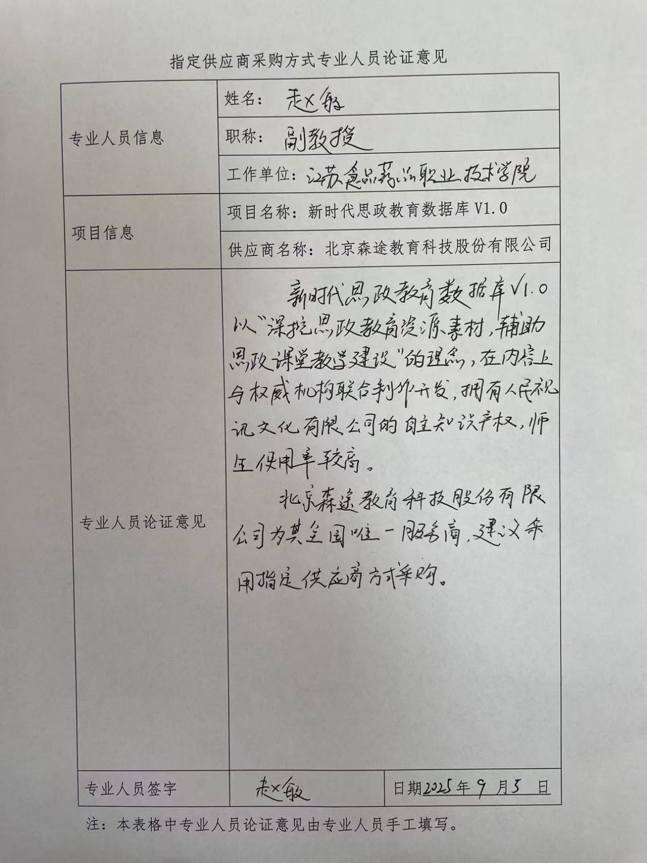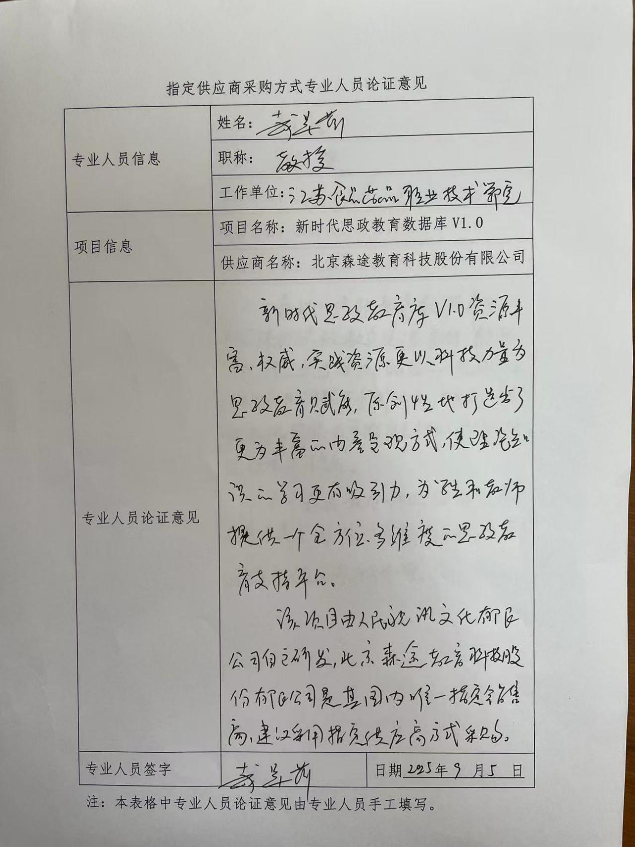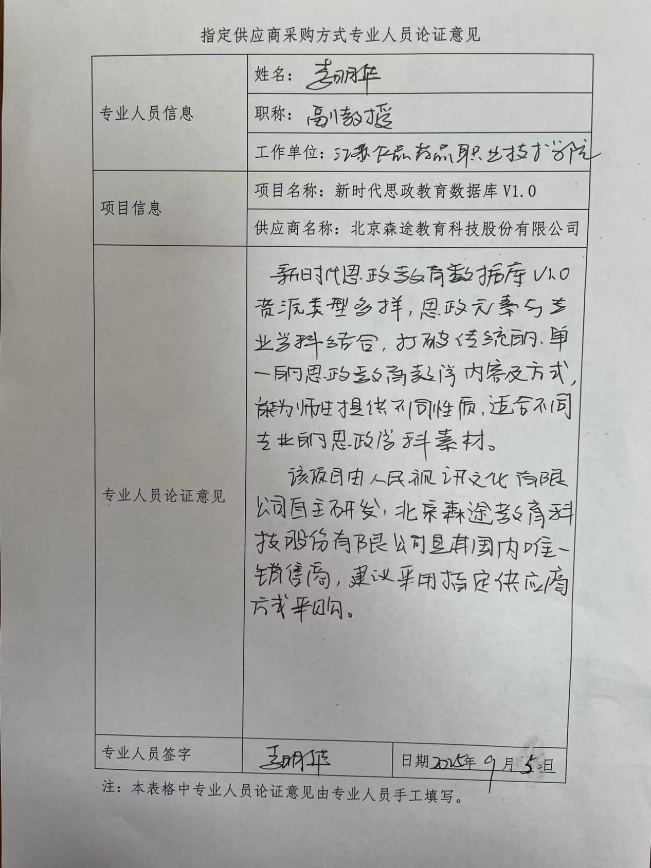 该项目由人民视讯文化有限公司自主研发,北京森途教育科技股份有限公司是其国内唯一指定销售商,故本项目拟以指定供应商方式采购。