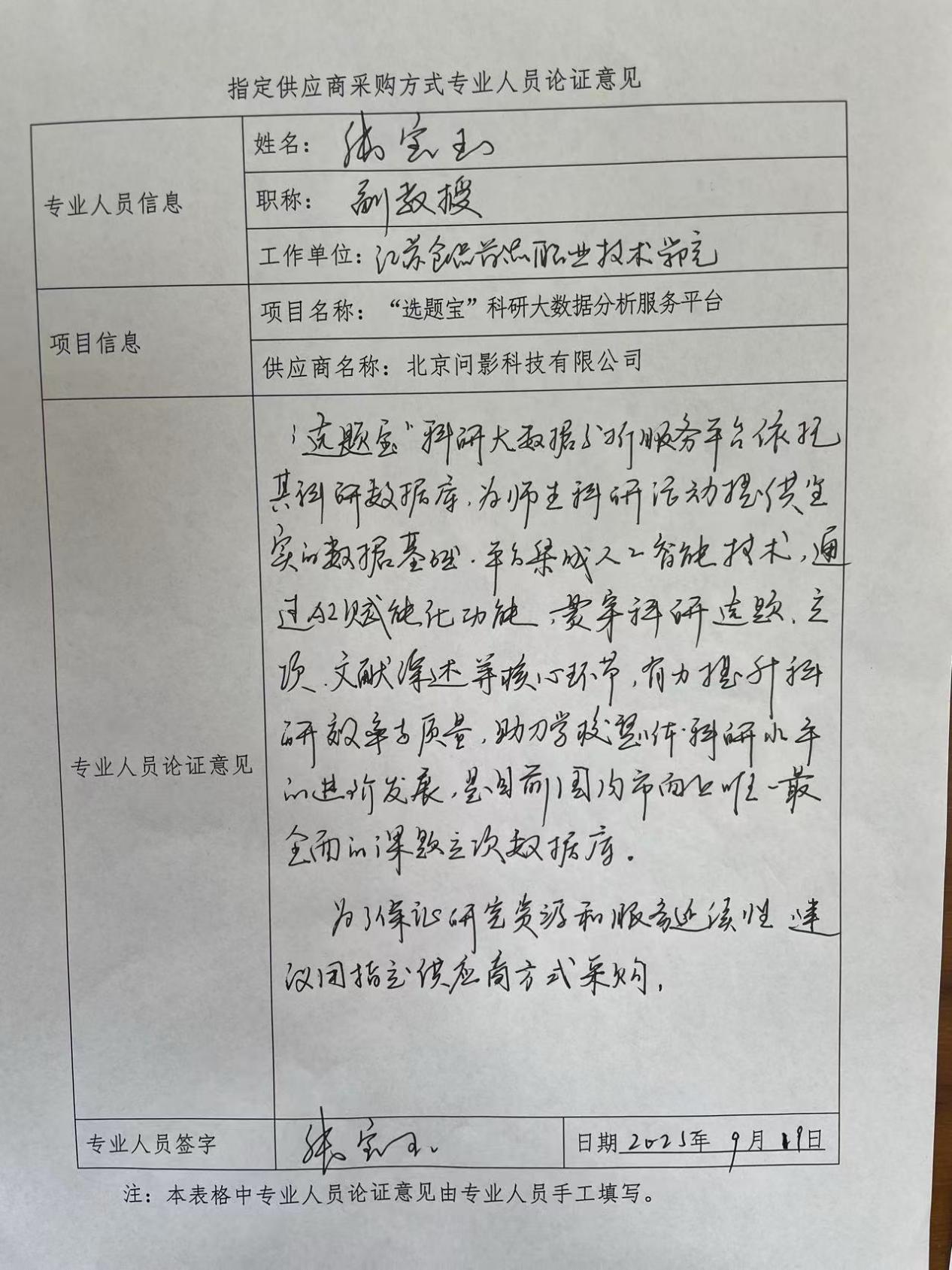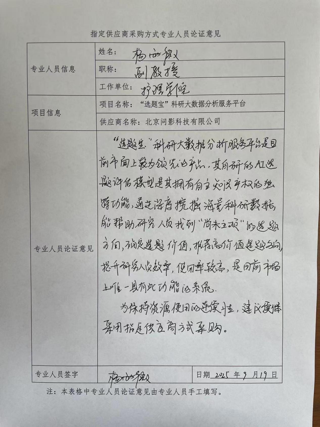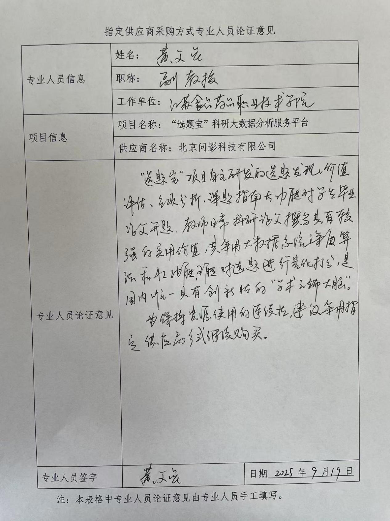 该项目为北京问影科技有限公司自主研发,故本项目拟以指定供应商方式采购。