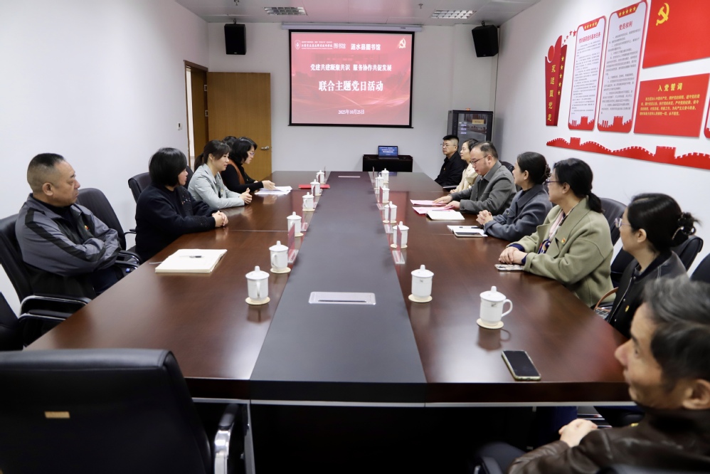 签约揭牌仪式后,双方开展了 “党建共建凝聚共识 服务协作共促发展” 联合主题党日活动。周伟领学了 “深入学习领会习近平新时代中国特色社会主义思想:充分发挥图书馆文化传播功能”,涟水县图书馆党支部书记朱娟领学了 “深入学习领会习近平新时代中国特色社会主义思想:把文化建设摆在更加突出位置”,与会党员参与讨论并参观涟水县图书馆。