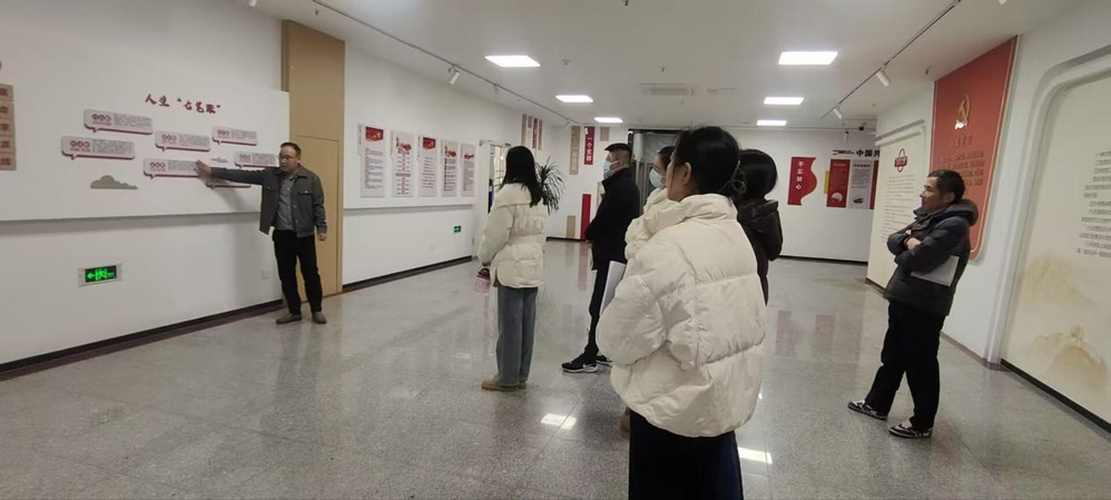 图书馆副馆长周伟带领党员依次参观了图书馆五楼党校关于中国共产党发展历程与廉洁教育展示,展区通过图文展板,展示了共产党人的信仰红船精神、中国五代领导人关于廉洁的论述、周恩来的六个杰出楷模、中国共产党人的精神谱系、党员的责任担当,以及关于党员廉洁自律的各项规定等多个板块。