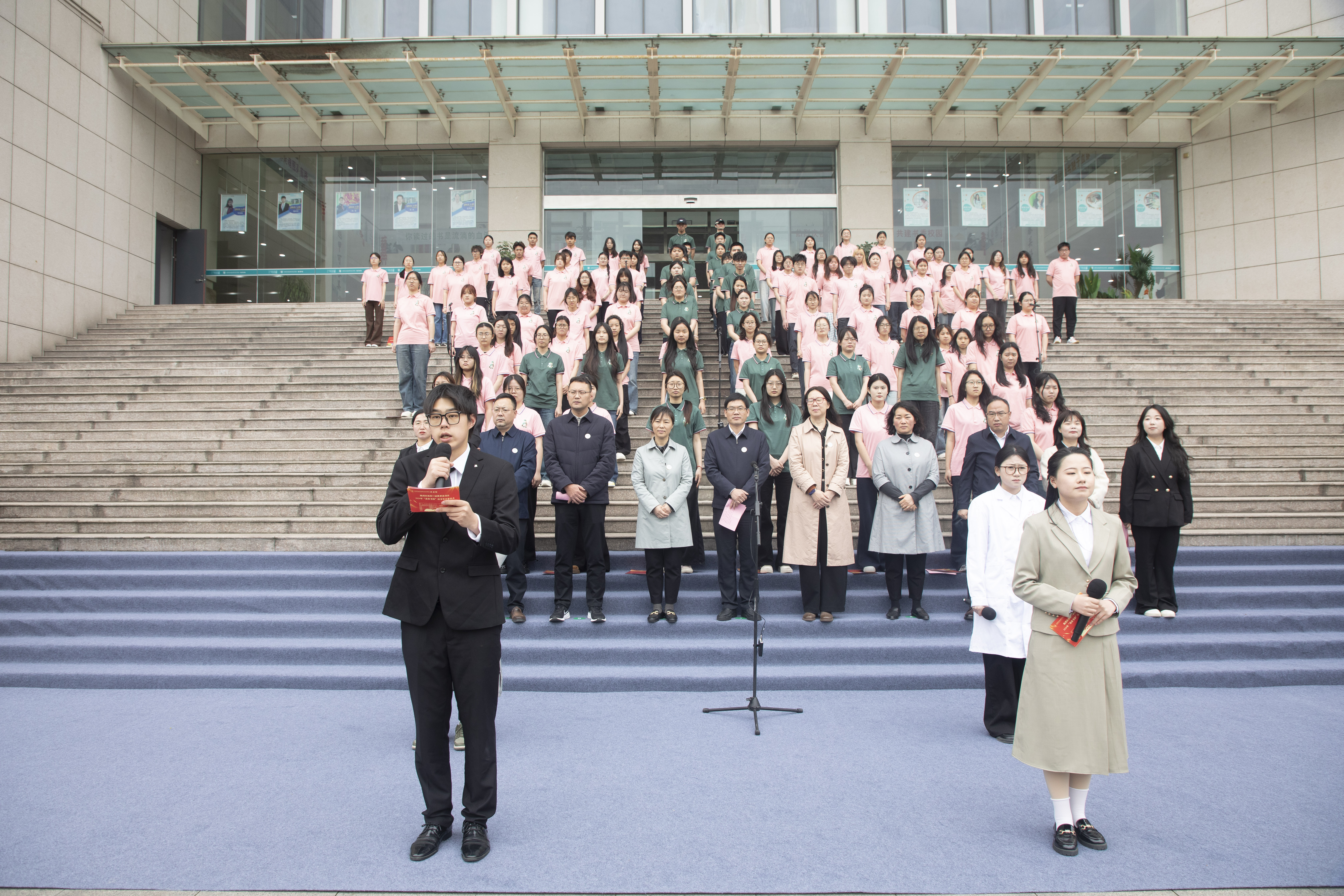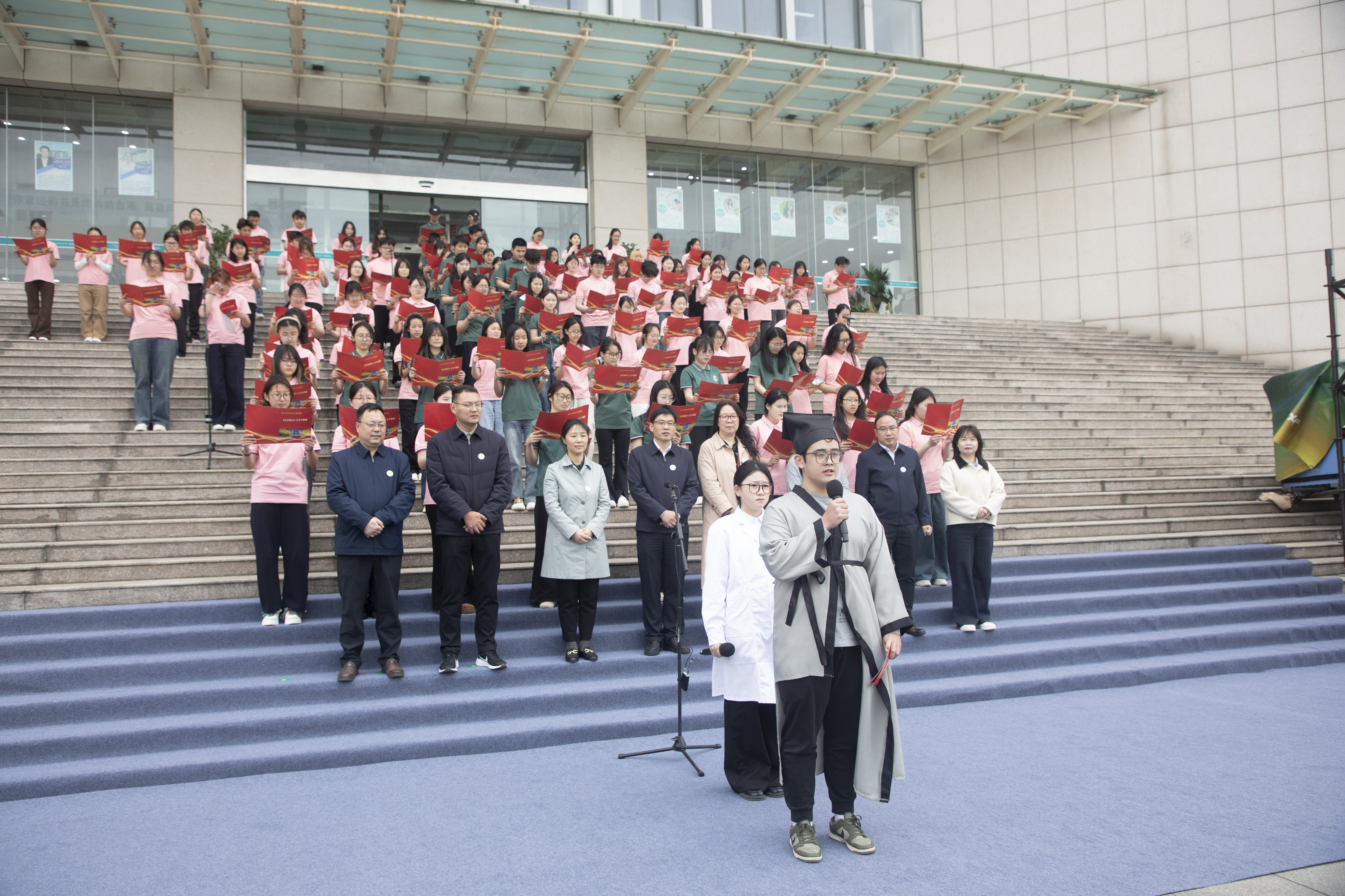 仪式后,数字经济学院学生团队带来了《本草纲目》经典诵读表演。同学们身着文化衫,手持朗诵手稿,以铿锵有力的诵读、富有创意的编排,将传统中医药文化经典与现代演绎方式巧妙融合。整场演出既有对古籍经典的敬畏传承,又融入了当代青年的创新表达,让沉睡千年的文字在书香校园里焕发新生,赢得了现场师生的热烈掌声与高度赞誉。