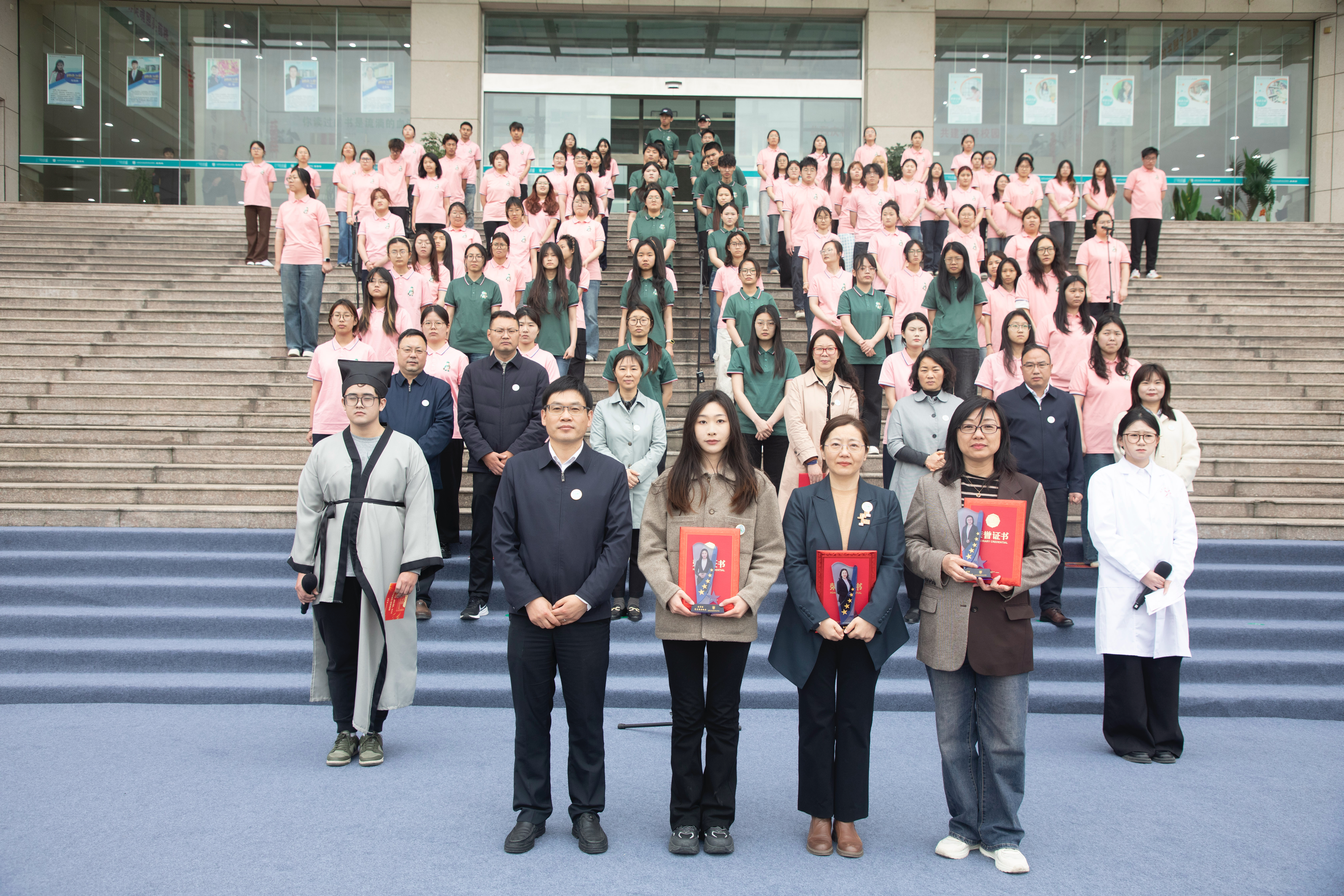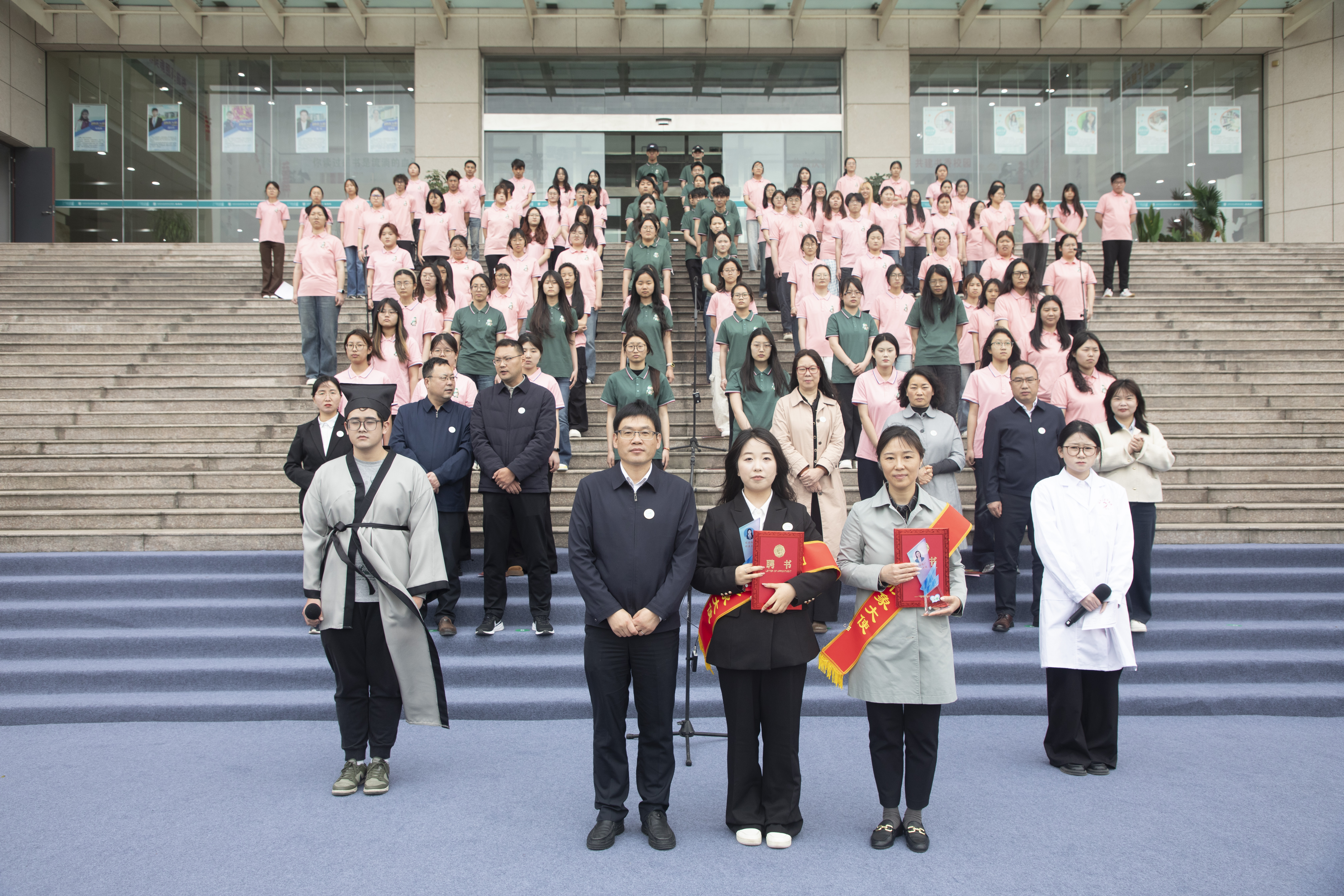 为深入贯彻《全民阅读促进条例》,推进阅读推广工作,本届读书节首次设立“阅读推广形象大使”。经过层层选拔,杨倩倩、晁溪两位脱颖而出,获此殊荣。焦宇知亲自为两位形象大使颁发证书和奖杯,期待他们以饱满的热情和创新的方式,在校园内传递阅读力量,引领阅读风尚。